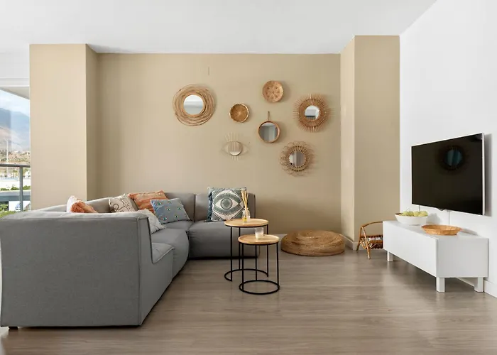 Disfruta de tus vacaciones en Estepona en el Luxury New Boho Apartment - Estepona. Ideal para quienes buscan una experiencia auténtica, está situado a unos 1 km del Centro Comercial Laguna Village y a tan solo 11 minutos a pie del Parque Huerta Nueva. Para disfrutar de una experiencia más emocionante, los huéspedes pueden practicar senderismo, tenis sobre hierba y bowling durante su estancia.
